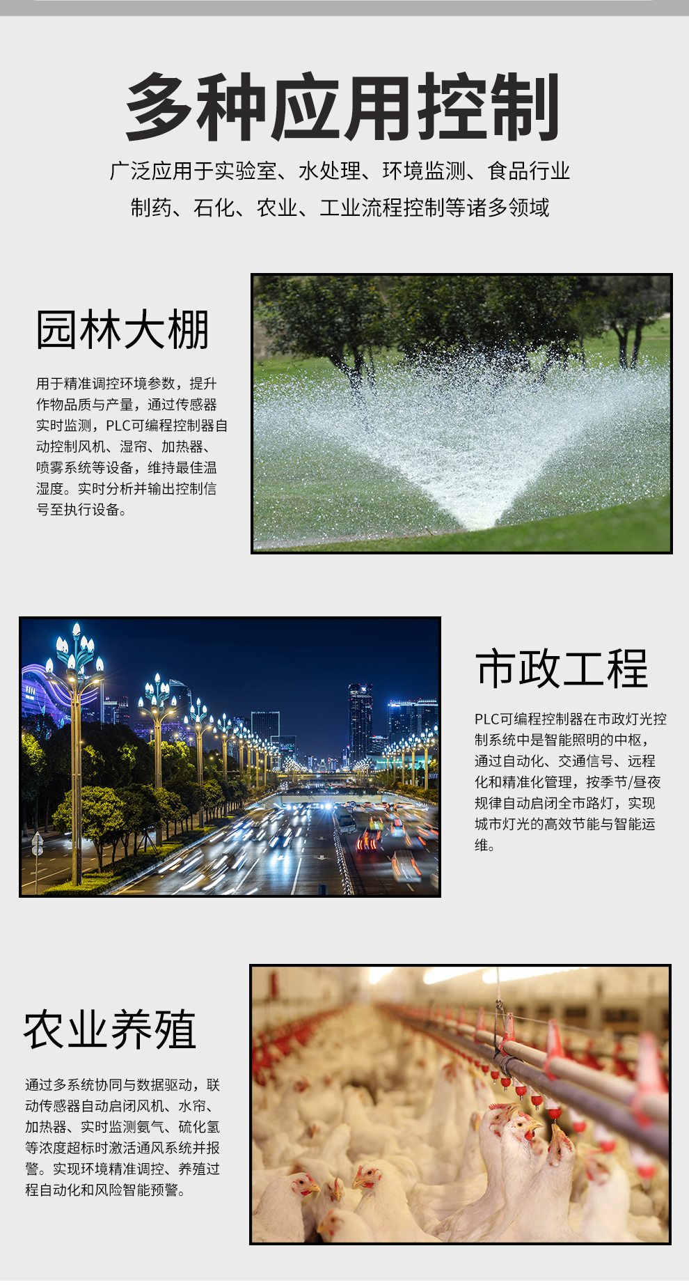 虹潤(rùn)公司是專業(yè)生產(chǎn)PLC控制器的國(guó)家專精特新“小巨人”企業(yè)。生產(chǎn)的簡(jiǎn)易PLC控制器,具有全隔離設(shè)計(jì),中文編程,專業(yè)邏輯控制與時(shí)間,梯形圖編程方式,遠(yuǎn)程RS485通訊監(jiān)測(cè)等特點(diǎn)。產(chǎn)品獲得智能化控制器、多通道可編程繼電器等2項(xiàng)國(guó)家發(fā)明專利;主持起草流程工業(yè)中電氣/儀表和控制系統(tǒng)的試車國(guó)家標(biāo)準(zhǔn),通信系統(tǒng)多通道數(shù)據(jù)采集控制終端規(guī)范軍用標(biāo)準(zhǔn),以及現(xiàn)場(chǎng)設(shè)備集成等5項(xiàng)智能制造國(guó)家標(biāo)準(zhǔn),參與國(guó)際5G標(biāo)準(zhǔn)制定,取得可編程繼電器等2項(xiàng)相關(guān)軟件著作權(quán)。產(chǎn)品廣泛應(yīng)用于工業(yè)自動(dòng)化設(shè)備、電氣自動(dòng)化系統(tǒng)、農(nóng)業(yè)灌溉、包裝機(jī)械、印刷機(jī)械、樓宇自控等諸多領(lǐng)域。