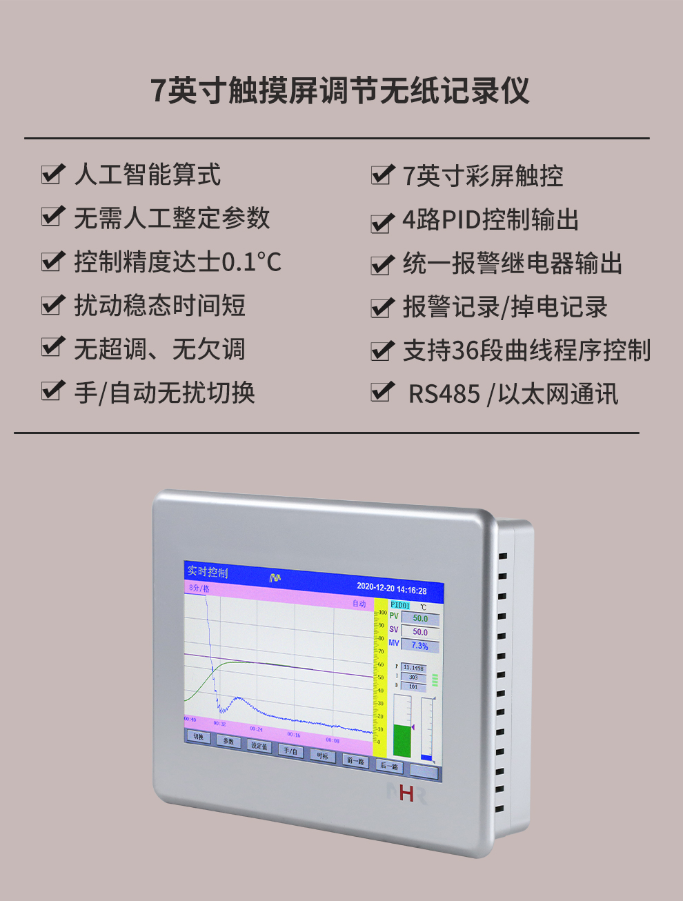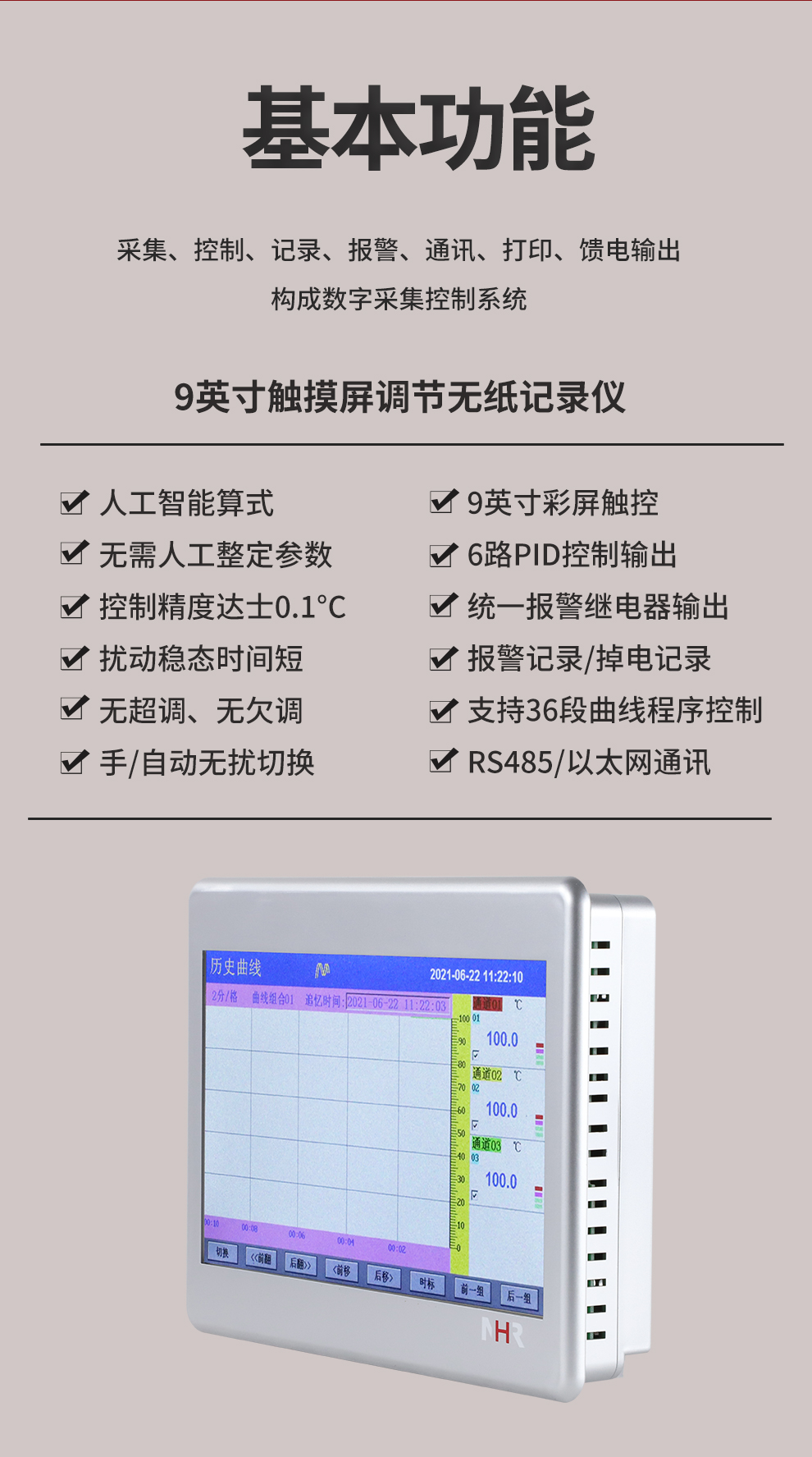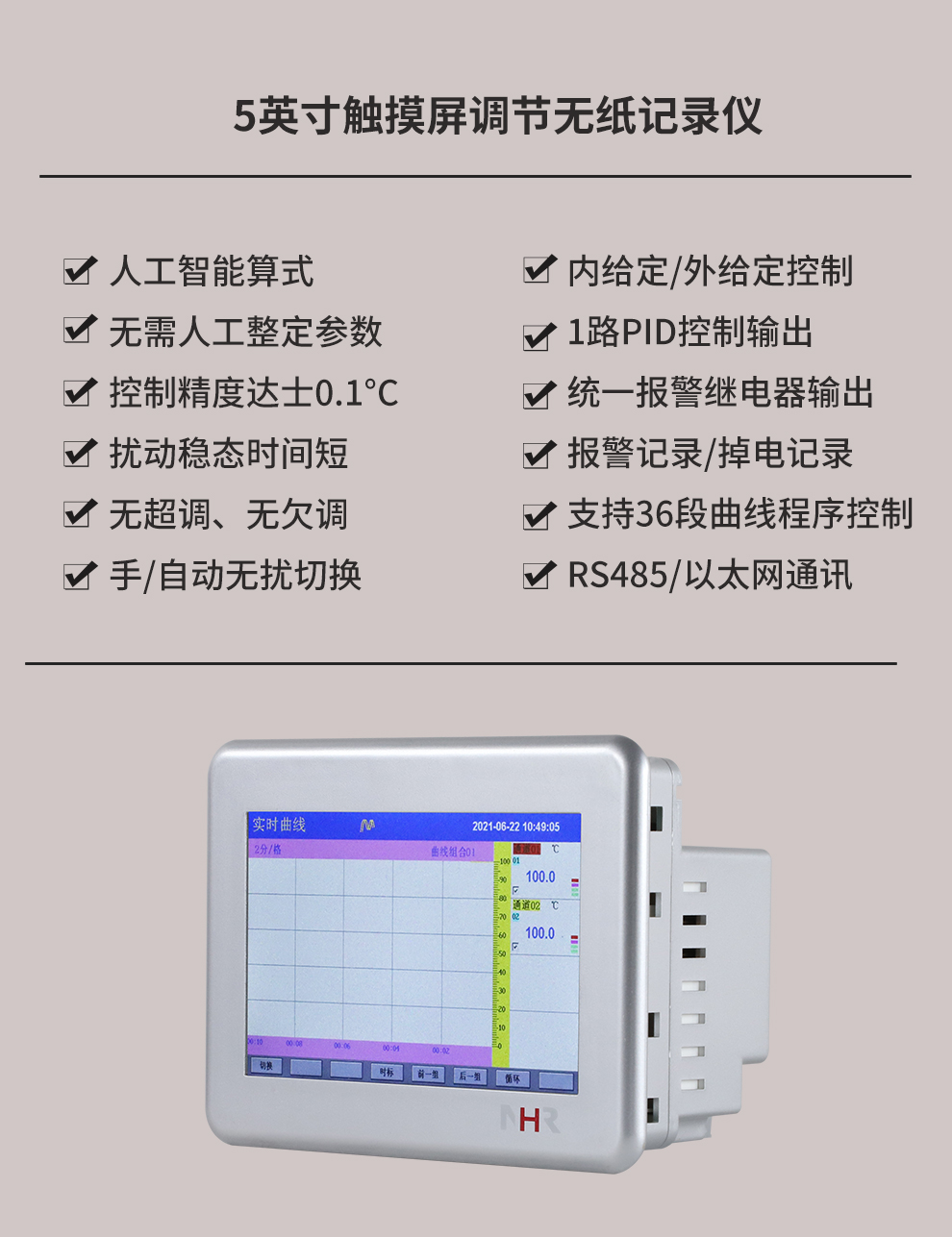 虹潤(rùn)公司是專(zhuān)業(yè)生產(chǎn)無(wú)紙記錄儀的國(guó)家專(zhuān)精特新“小巨人”企業(yè)。生產(chǎn)的觸摸屏調(diào)節(jié)無(wú)紙記錄儀,具有觸摸大屏顯示,真正人工智能算式,無(wú)需人工整定參數(shù),控制精度達(dá)士0.1°C,數(shù)據(jù)記錄與轉(zhuǎn)存, RS485/以太網(wǎng)通訊,5/7/9英寸可選等特點(diǎn)。產(chǎn)品獲得智能化控制器、人工智能調(diào)節(jié)器及調(diào)節(jié)方法、模糊PID控制儀及控制方法、平板無(wú)紙記錄儀、巡回檢測(cè)顯示方法及裝置等5項(xiàng)國(guó)家發(fā)明專(zhuān)利,主持起草物聯(lián)網(wǎng)智能記錄儀表通用技術(shù)條件、物聯(lián)網(wǎng)智能溫度儀表通用技術(shù)條件、工業(yè)過(guò)程測(cè)量和控制系統(tǒng)用智能調(diào)節(jié)器等3項(xiàng)國(guó)家標(biāo)準(zhǔn),通信系統(tǒng)多通道數(shù)據(jù)采集控制終端規(guī)范軍用標(biāo)準(zhǔn),以及空間數(shù)據(jù)與信息數(shù)據(jù)傳輸系統(tǒng)等2項(xiàng)航天標(biāo)準(zhǔn),參與國(guó)際5G標(biāo)準(zhǔn)制定,取得觸摸屏彩色調(diào)節(jié)無(wú)紙記錄儀等3項(xiàng)相關(guān)軟件著作權(quán)。產(chǎn)品廣泛應(yīng)用于電力、石化、冶金、化工、食品、制藥、熱處理、水處理、機(jī)械配套等諸多領(lǐng)域。