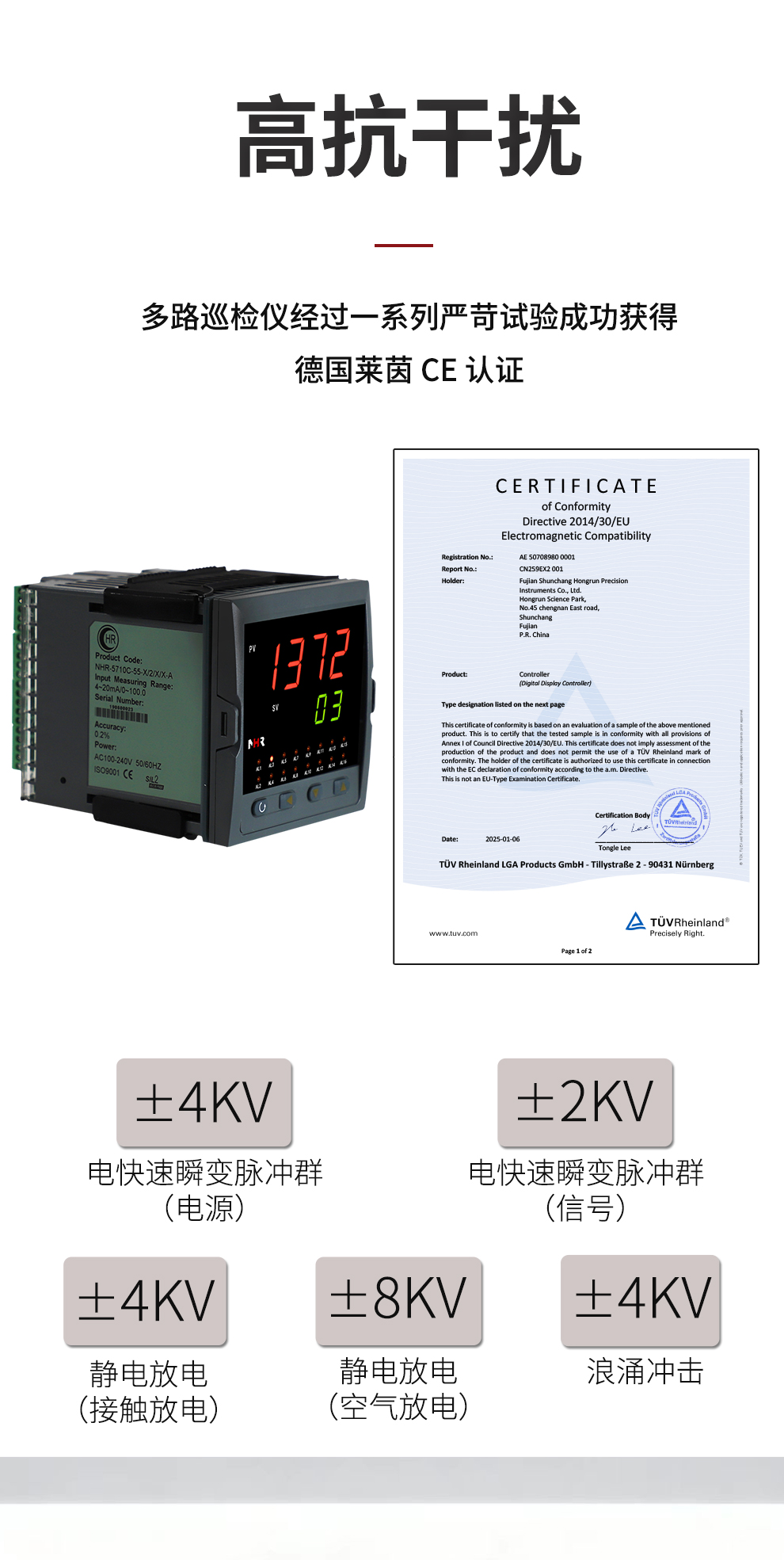 虹潤公司是專業(yè)生產(chǎn)多路溫度巡檢儀的國家專精特新“小巨人”企業(yè),生產(chǎn)的多回路測量顯示控制儀,具有8路/16路測量通道,全切換信號(hào)輸入,多種輸出類型,高抗干擾,RS485/RS232通訊等特點(diǎn)。產(chǎn)品獲得巡回檢測顯示方法及裝置、儀表殼體等2項(xiàng)國家發(fā)明專利,主持起草工業(yè)過程控制系統(tǒng)用模擬輸入兩位或多位輸出儀表、物聯(lián)網(wǎng)智能溫度儀表通用技術(shù)條件等2項(xiàng)國家標(biāo)準(zhǔn),以及通信系統(tǒng)多通道數(shù)據(jù)采集控制終端規(guī)范軍用標(biāo)準(zhǔn),參與國際5G標(biāo)準(zhǔn)制定,取得多回路測量顯示控制儀等3項(xiàng)相關(guān)軟件著作權(quán)。產(chǎn)品廣泛應(yīng)用于電力、石化、冶金、制藥、水處理、機(jī)械配套等各種工業(yè)現(xiàn)場。