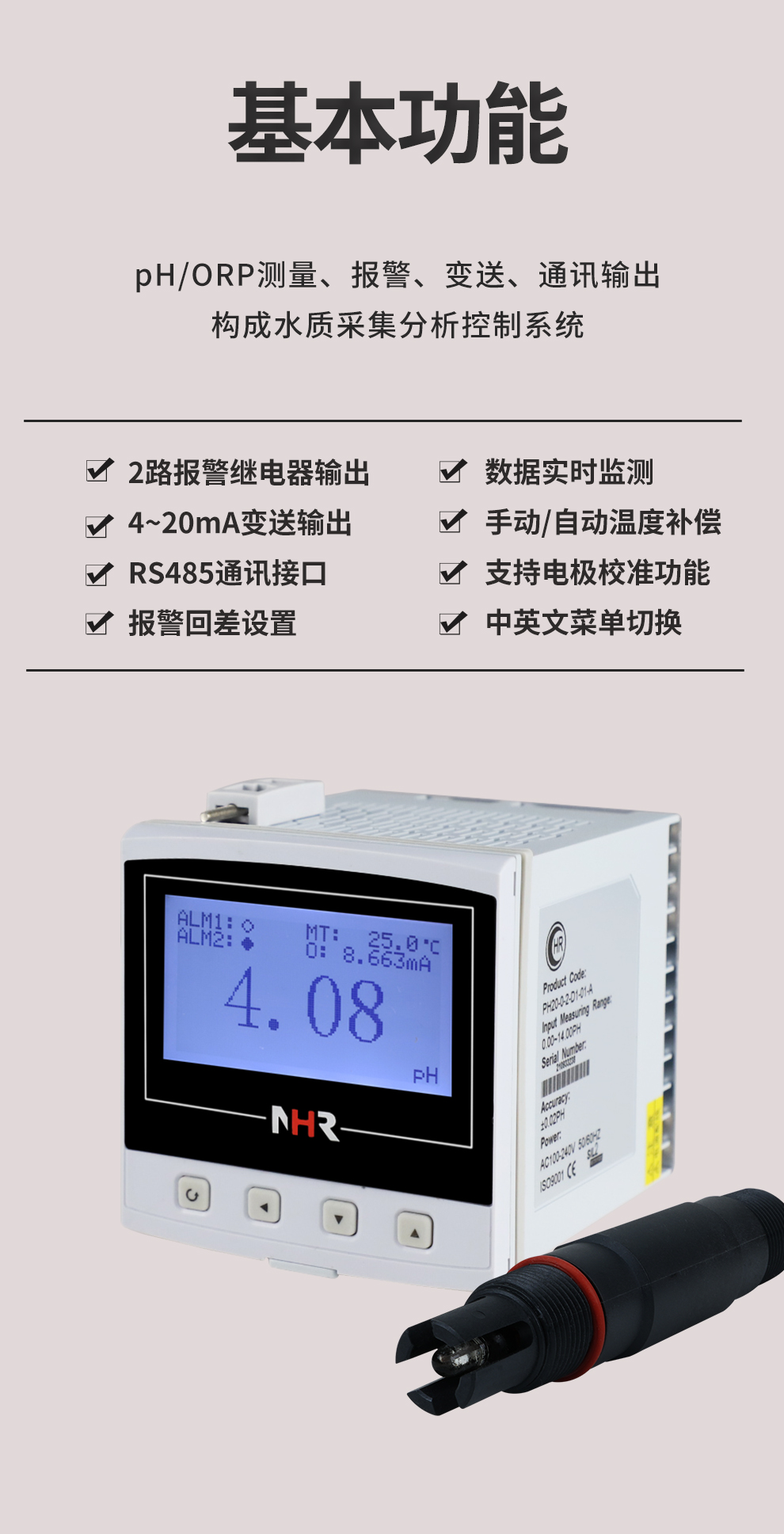 NHR-PH20A系列經(jīng)濟(jì)型pH/ORP控制器