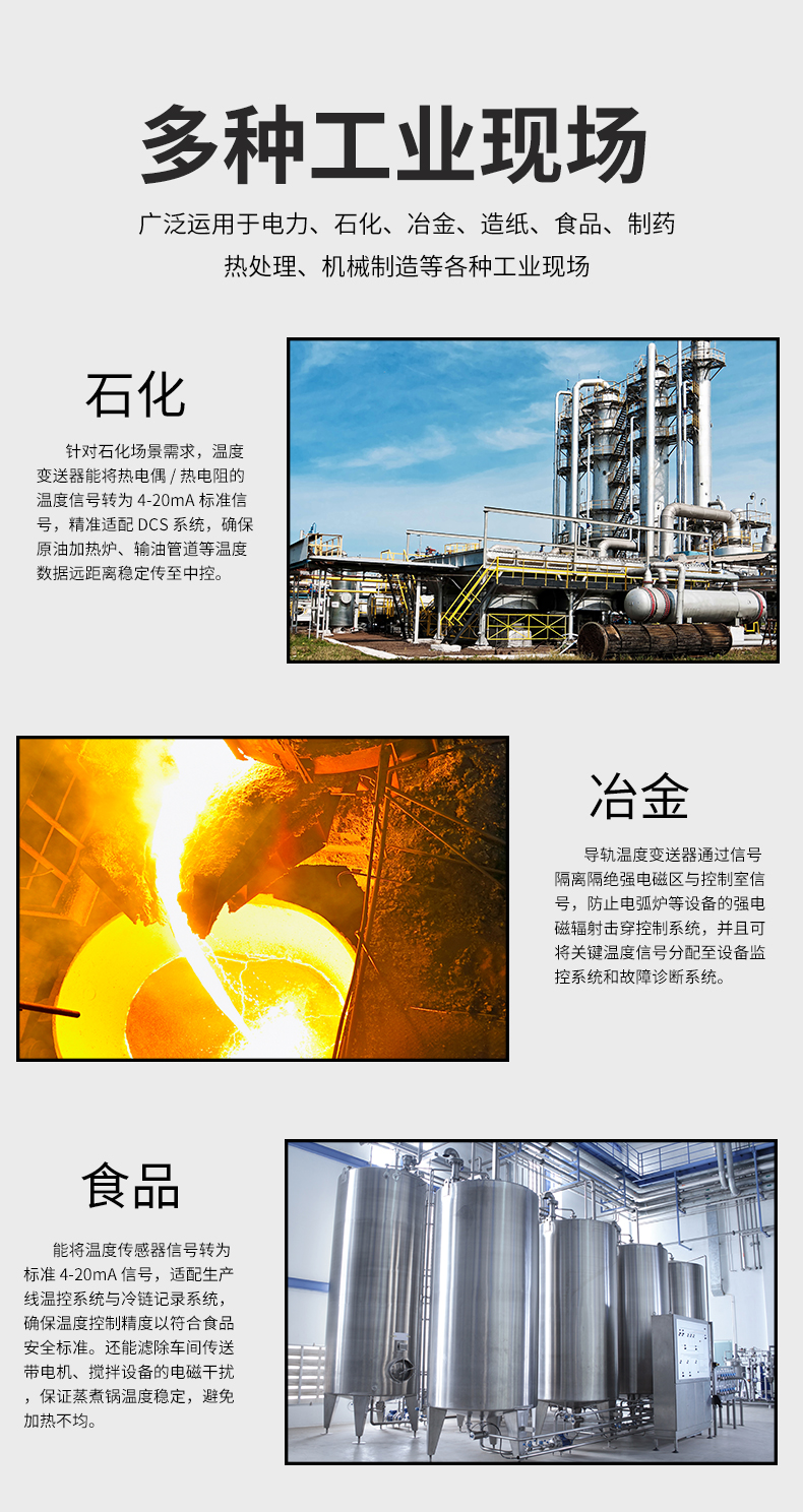 虹潤公司是專業(yè)生產(chǎn)溫度變送器的國家專精特新“小巨人”企業(yè)。生產(chǎn)的溫度變送器,具有采用磁隔離技術(shù),配套編程器可修改參數(shù),抗干擾能力強,穩(wěn)定性好,帶RS485或HART通訊等特點。該產(chǎn)品不僅通過HART基金會認證、德國萊茵 CE 認證與 SIL 功能安全認證,還獲得具備減震抗干擾能力的溫度變送器、信號隔離器、一種二端子模塊、無源信號隔離器等4項國家發(fā)明專利,主持起草物聯(lián)網(wǎng)智能溫度儀表、現(xiàn)場設(shè)備工具(FDT)接口規(guī)范、工業(yè)過程測量和控制系統(tǒng)用溫度變送器等3項國家標準,以及通信系統(tǒng)多通道數(shù)據(jù)采集控制終端規(guī)范軍用標準,參與國際5G標準制定,取得溫度變送器等5項相關(guān)軟件著作權(quán)。產(chǎn)品廣泛應(yīng)用于石油、電力、化工,冶金、制藥、紡織、橡膠制造等工業(yè)領(lǐng)域現(xiàn)場自動化測溫過程。