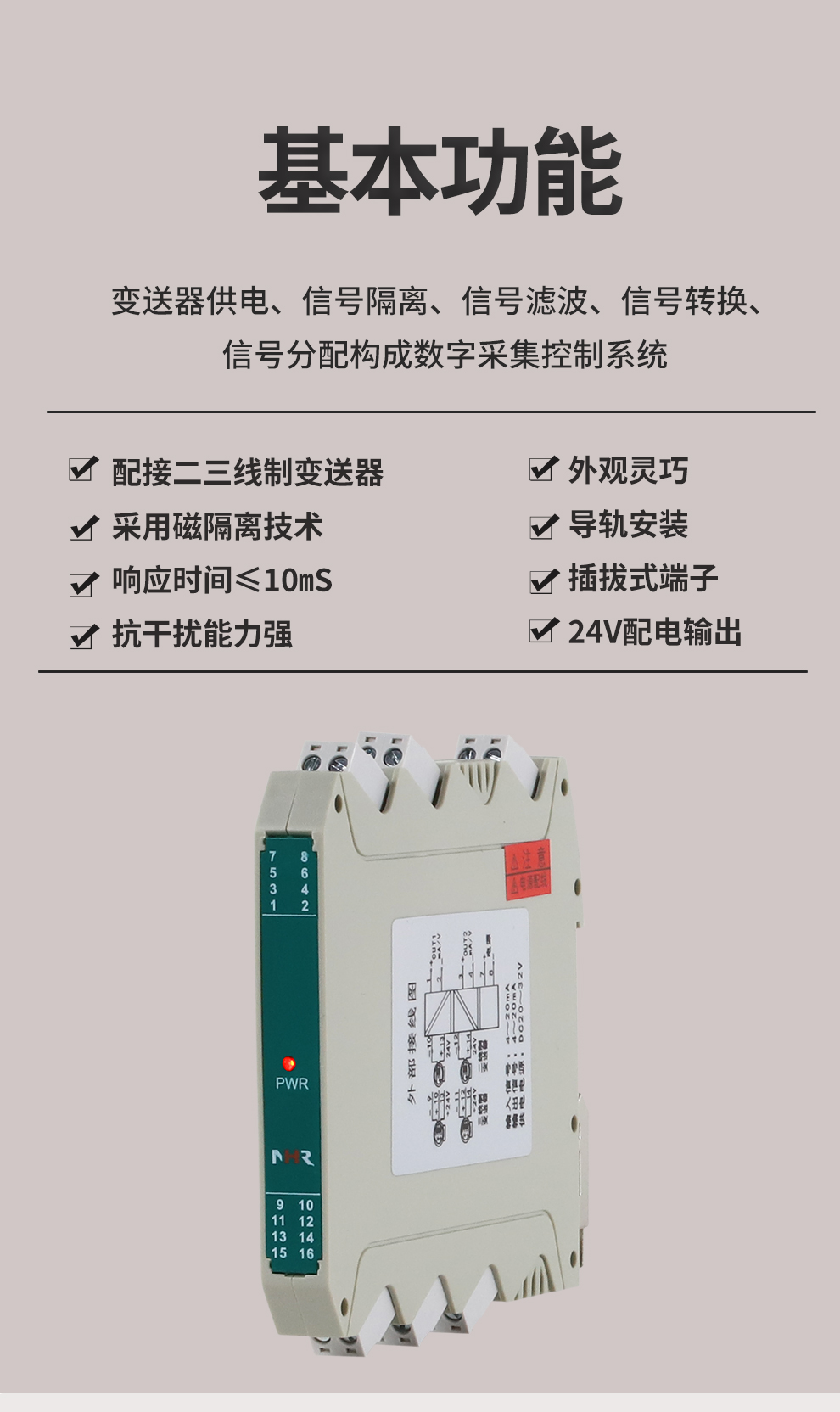 虹潤公司是專業(yè)生產(chǎn)隔離器的國家專精特新“小巨人”企業(yè)。生產(chǎn)的配電器,具有配接二三線制變送器,采用磁隔離技術(shù),響應(yīng)時間快,抗干擾能力強(qiáng),24V配電輸出,性價比高等特點。該產(chǎn)品不僅通過德國萊茵 CE 認(rèn)證與 SIL 功能安全認(rèn)證,還獲得信號隔離器、二端子模塊、無源信號隔離器等3項國家發(fā)明專利,主持起草現(xiàn)場設(shè)備工具(FDT)接口規(guī)范、工業(yè)過程測量和控制系統(tǒng)用隔離式安全柵、工業(yè)過程測量和控制系統(tǒng)用配電器等3項國家標(biāo)準(zhǔn),以及通信系統(tǒng)多通道數(shù)據(jù)采集控制終端規(guī)范軍用標(biāo)準(zhǔn),參與國際5G標(biāo)準(zhǔn)制定。產(chǎn)品廣泛應(yīng)用于石油、化工,冶金、電力、食品、光伏能源、污水處理等需要電隔離的工業(yè)自動化控制系統(tǒng)。