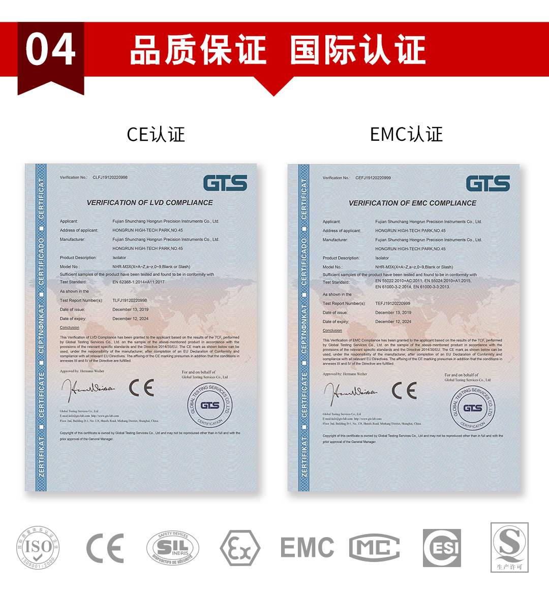 虹潤(rùn)公司是專業(yè)生產(chǎn)隔離器的國(guó)家專精特新“小巨人”企業(yè)。生產(chǎn)的智能信號(hào)隔離器涵蓋開關(guān)量轉(zhuǎn)換器、電流電壓變送器、溫度變送器、配電器、頻率轉(zhuǎn)換器及通訊轉(zhuǎn)換器等多種產(chǎn)品類型。產(chǎn)品獲得信號(hào)隔離器、一種二端子模塊、無(wú)源信號(hào)隔離器等3項(xiàng)國(guó)家發(fā)明專利,主持起草現(xiàn)場(chǎng)設(shè)備工具(FDT)接口規(guī)范、工業(yè)過程測(cè)量和控制系統(tǒng)用隔離式安全柵、工業(yè)過程測(cè)量和控制系統(tǒng)用配電器等3項(xiàng)國(guó)家標(biāo)準(zhǔn),以及通信系統(tǒng)多通道數(shù)據(jù)采集控制終端規(guī)范軍用標(biāo)準(zhǔn),參與國(guó)際5G標(biāo)準(zhǔn)制定,取得導(dǎo)軌式智能隔離器、頻率轉(zhuǎn)換器等3項(xiàng)相關(guān)軟件著作權(quán)。產(chǎn)品廣泛電力、冶金、工業(yè)電爐、變電站、高壓電機(jī)房等需要電隔離的工業(yè)自動(dòng)化控制系統(tǒng)。